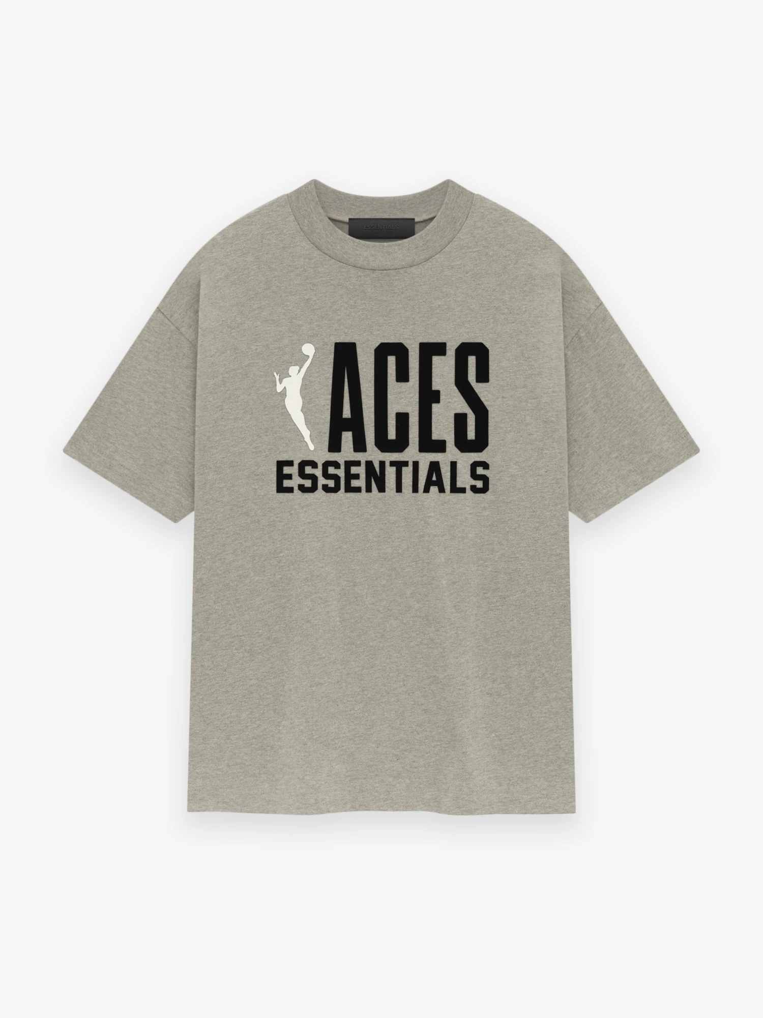 The Essentials Aces short sleeve tee is crafted from core cotton jersey. It features a relaxed fit in the body with dropped shoulders and a rib-knit crewneck. On the front, there is a rubberized soft-touch Aces Essentials lockup along with the WNBA logo. Additionally, a rubberized Fear of God label is located at the back collar.