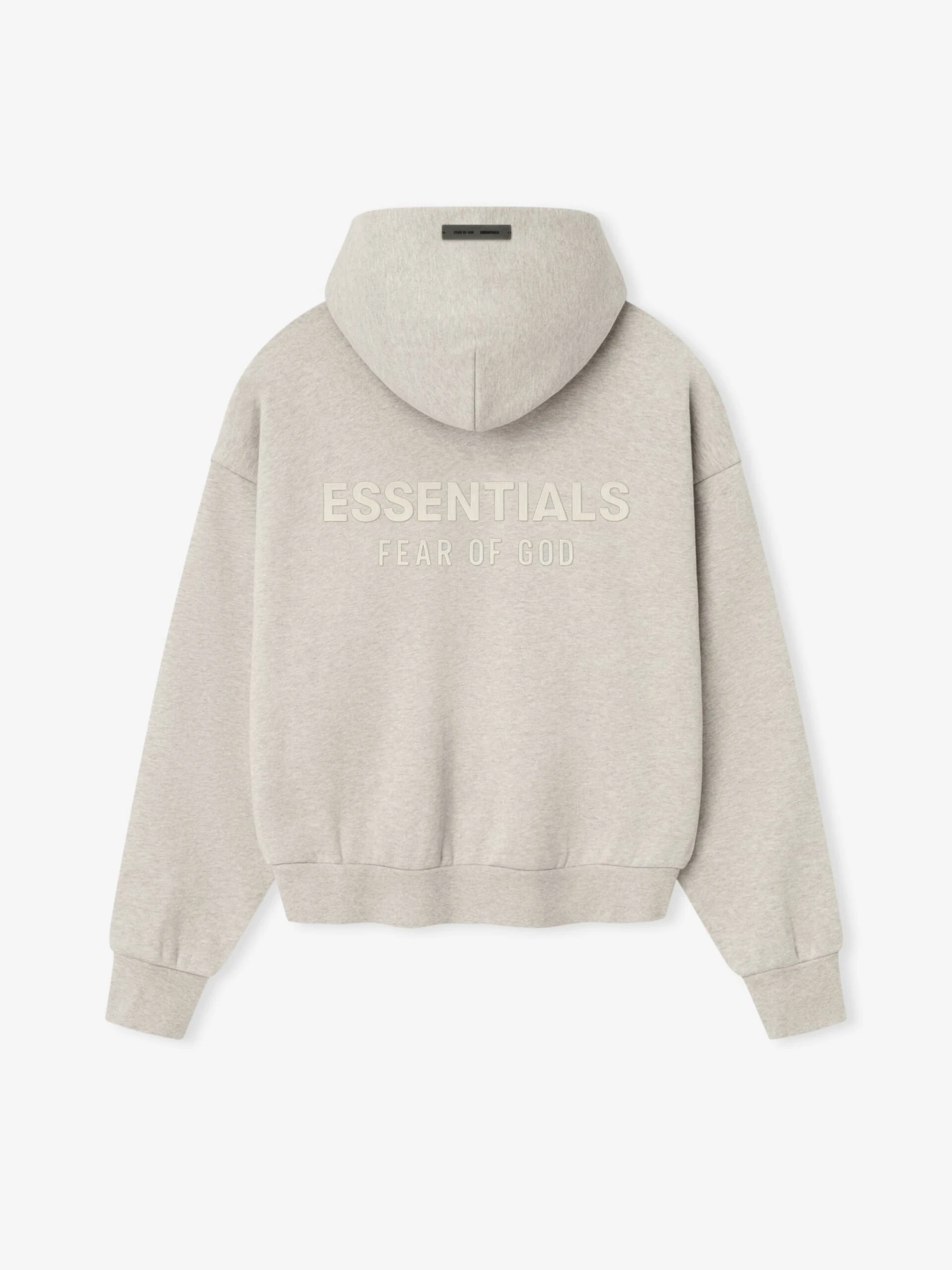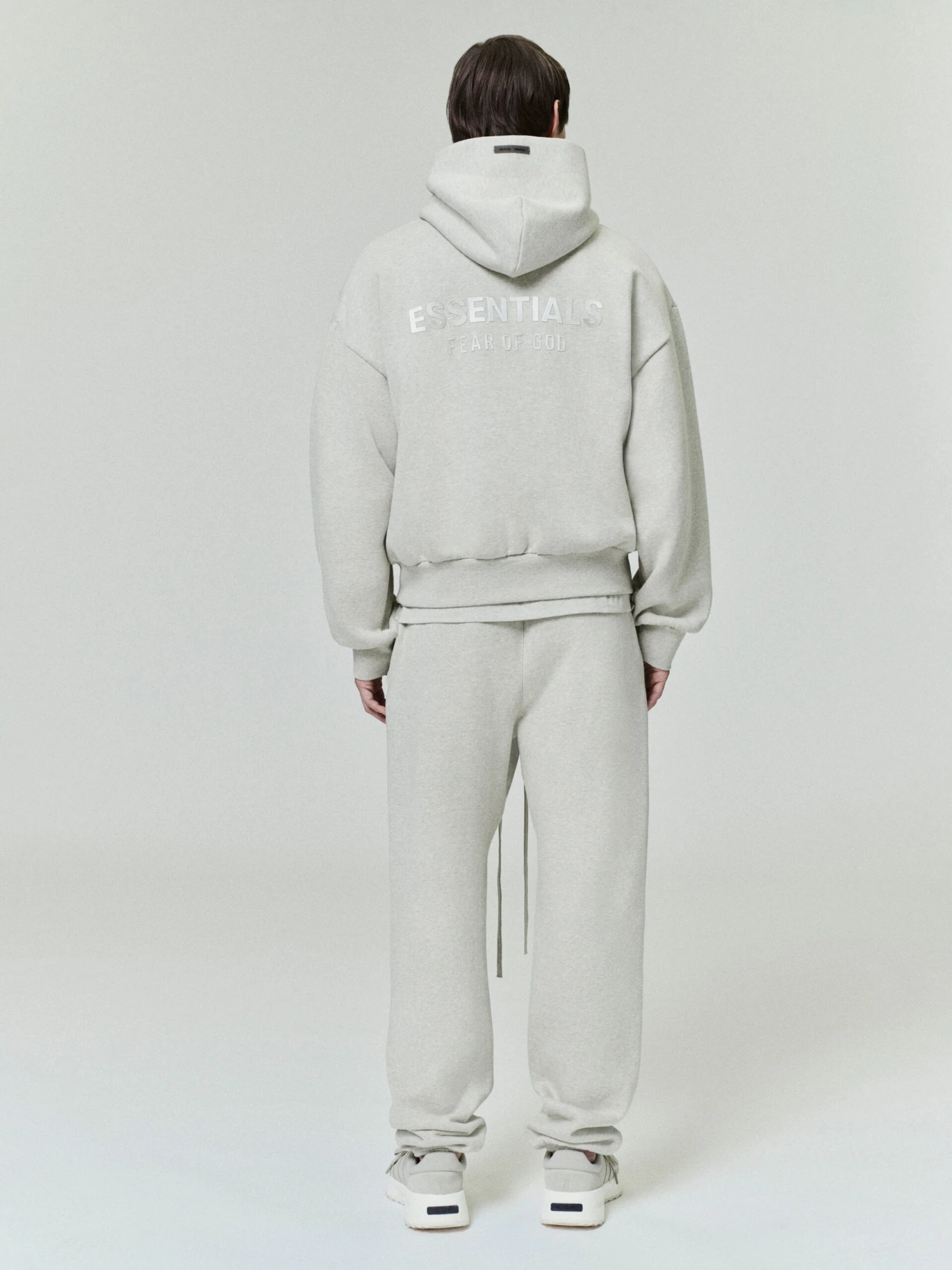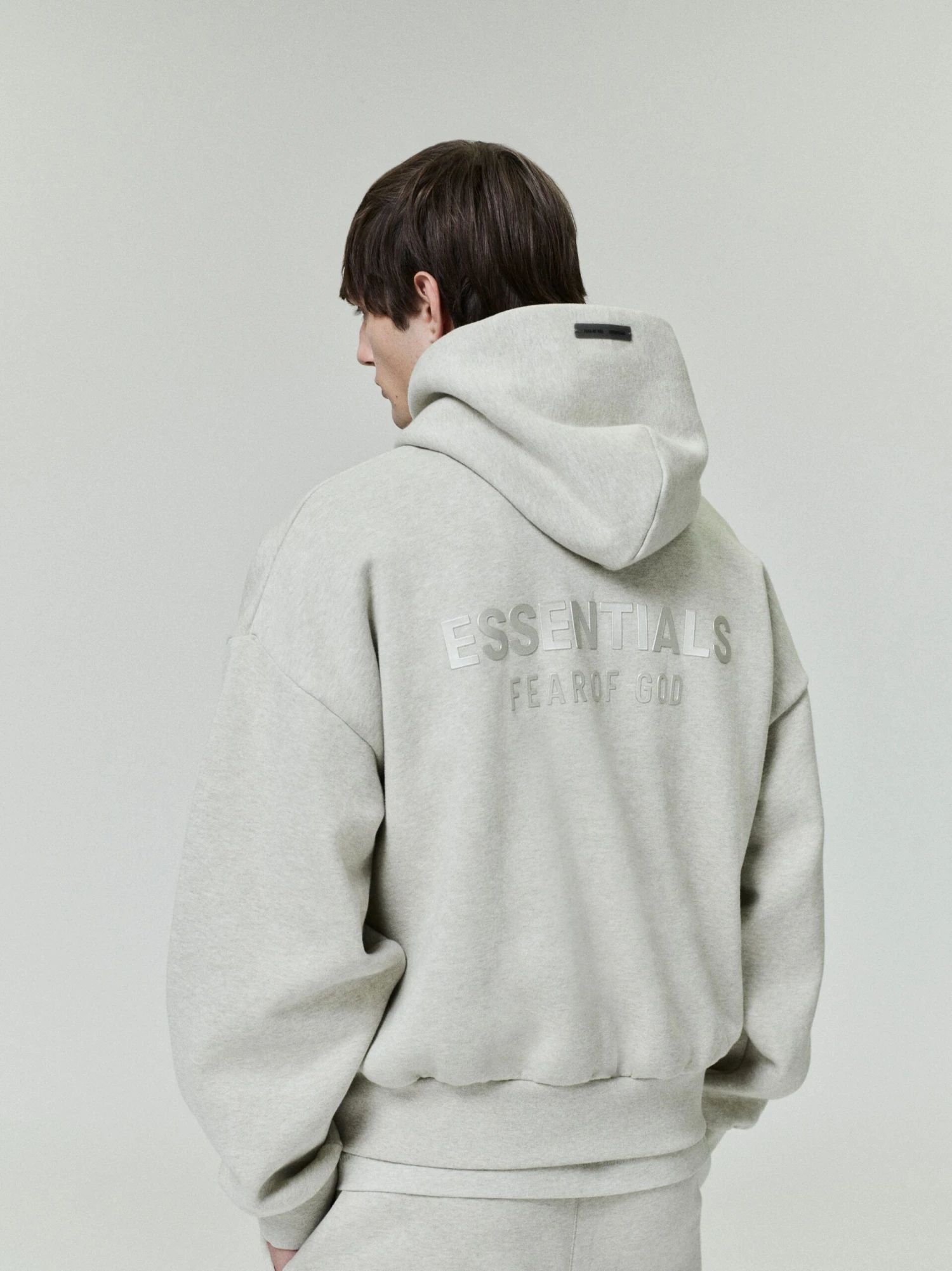 The Classic Hoodie is made from 380gsm core fleece to provide ideal comfort and structure. The hoodie features a classic fit with signature Fear of God relaxed proportions. A new “Essentials Fear of God” beveled metallic logo is branded across the back. Details include a double-layer hoodie, kangaroo pocket, rib-knit cuffs and waist-hem. A “Fear of God Essentials” rubberized label is stitched on the hood and sleeve.