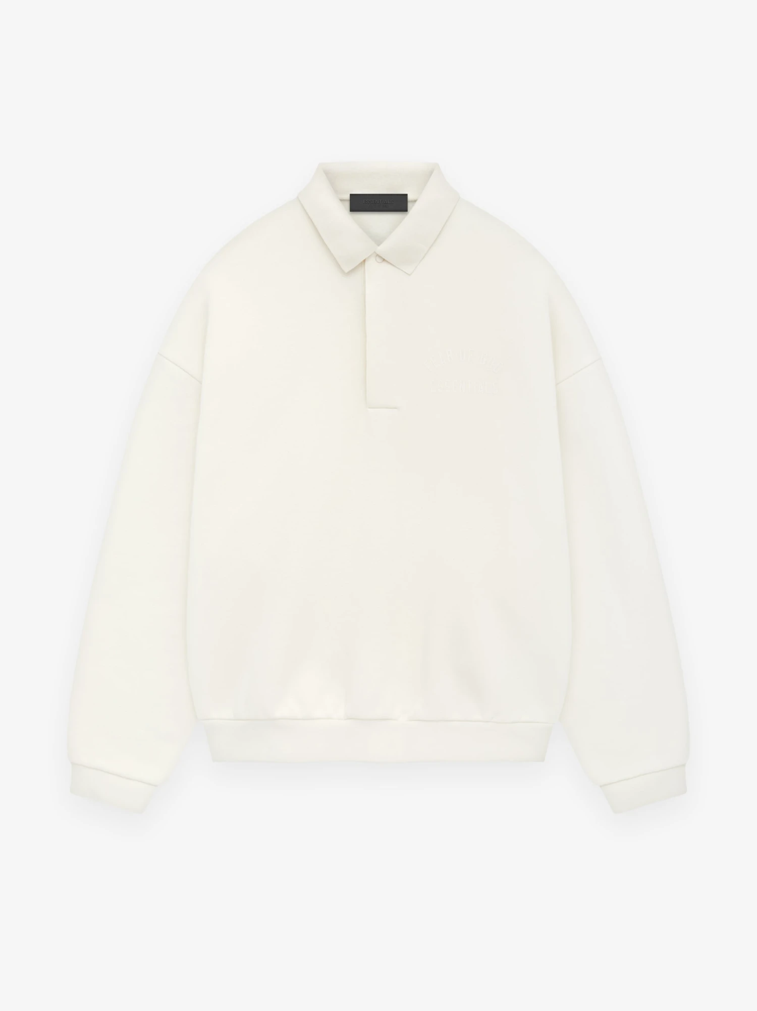 The Fleece Polo has been updated in a heavier 480gsm core fleece to provide additional body and structure. The “Fear of God Essentials” collegiate graphic is screen printed on the left chest. Details include a rib-knit polo collar, cuffs, and waist-hem. The Essentials Fear of God rubberized label is at the back collar.