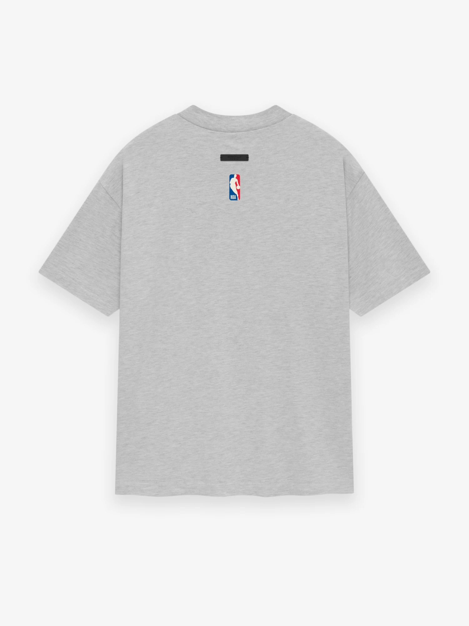The Essentials Knicks short sleeve tee is crafted from core cotton jersey. It features a relaxed fit in the body with dropped shoulders and a rib-knit crewneck. On the front, there is a rubberized soft-touch “KNICKS ESSENTIALS” lockup, along with the iconic NBA logo on the back. Additionally, a rubberized “Essentials Fear of God” label is located at the back collar.