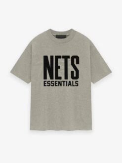 The Essentials Nets short sleeve tee is crafted from core cotton jersey. It features a relaxed fit in the body with dropped shoulders and a rib-knit crewneck. On the front, there is a rubberized soft-touch Nets Essentials lockup along with the iconic NBA logo on the back. Additionally, a rubberized Fear of God label is located at the back collar.