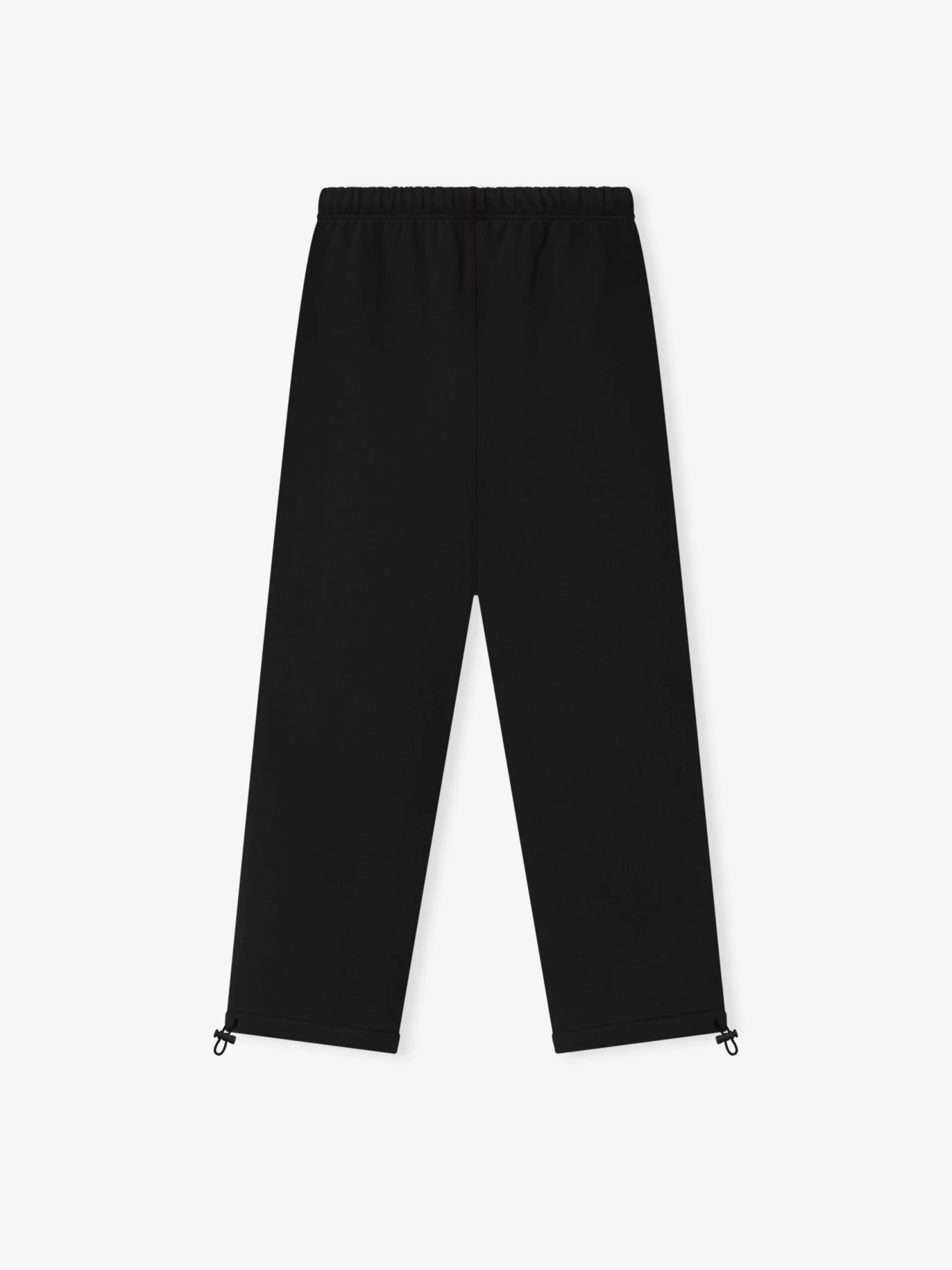 The Relaxed Fleece Sweatpant is crafted from 380gsm core fleece, offering both body and structure. The relaxed straight leg fit provides ideal room for comfort and movement. A new “Essentials Fear of God” beveled metallic logo is prominently branded on the leg. Additional details include an encased elastic waistband and bottom hem, elongated drawstrings, side seam pockets, and ankle bungee. The front center showcases a rubberized label bearing the “Fear of God Essentials” logo.