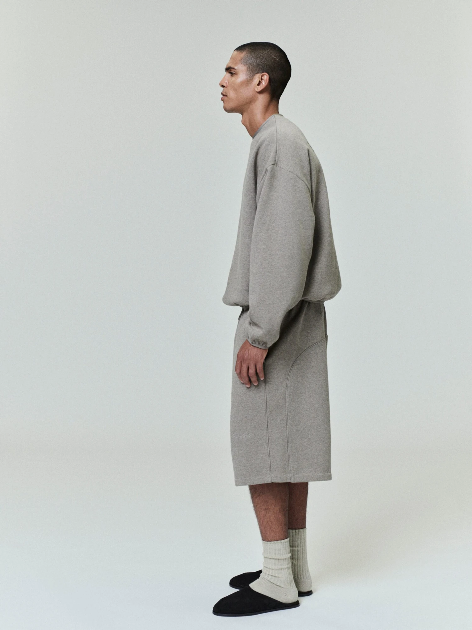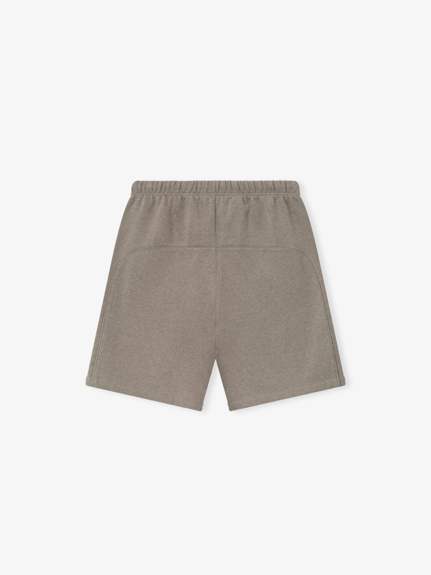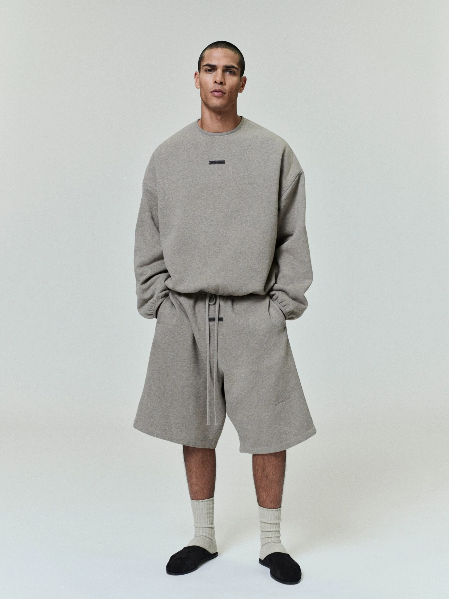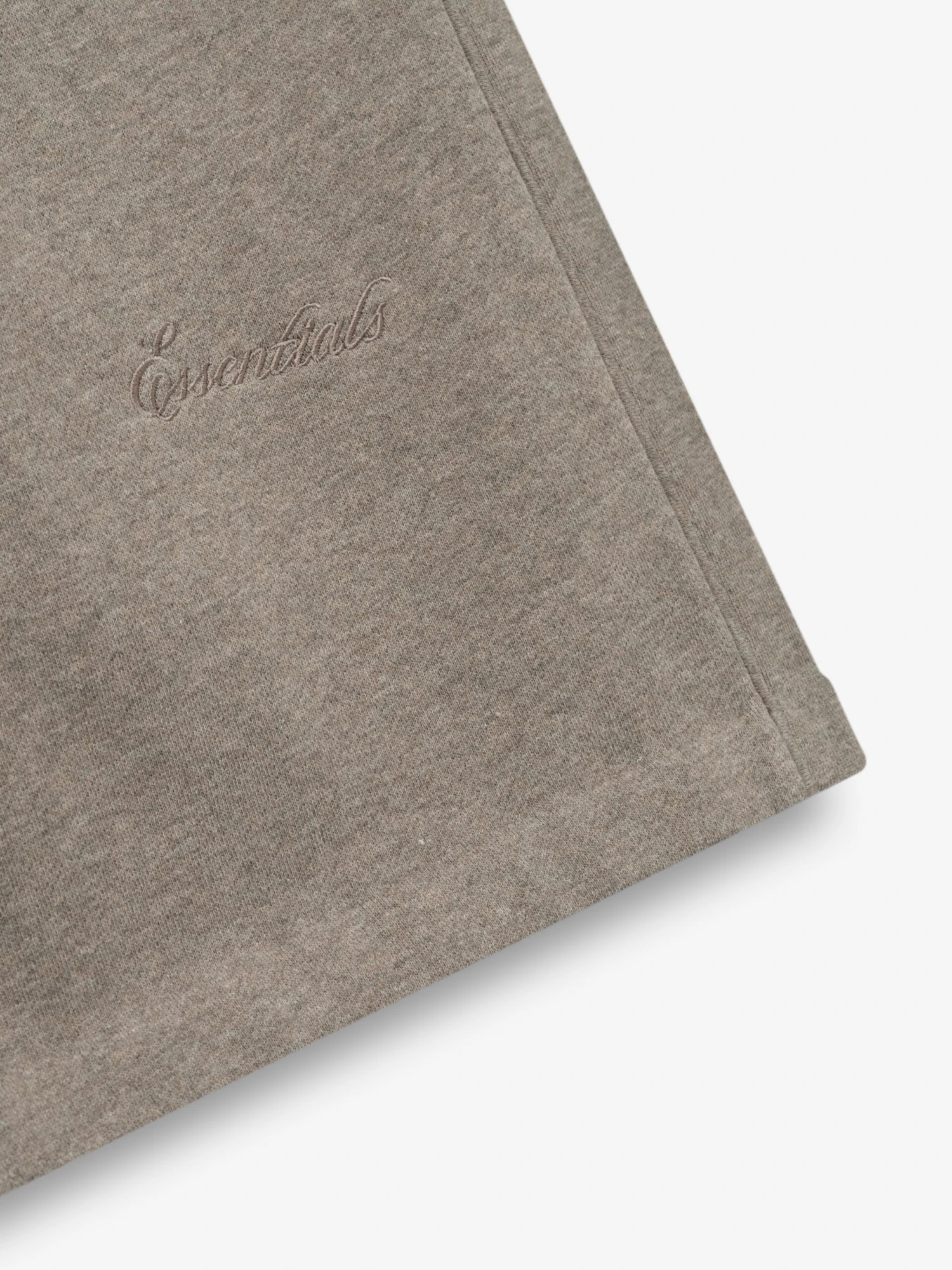 The Relaxed Sweatshort with piping is made from 380gsm core fleece. It features a baggy, elongated fit that captures the essence of 90’s basketball style, complete with a sportswear piping detail. The embroidered “Essentials” script logo is placed on the leg, while a “Fear of God Essentials” rubberized label is situated at the center front. Key features include side pockets and an encased elastic waistband with drawstrings for added comfort.