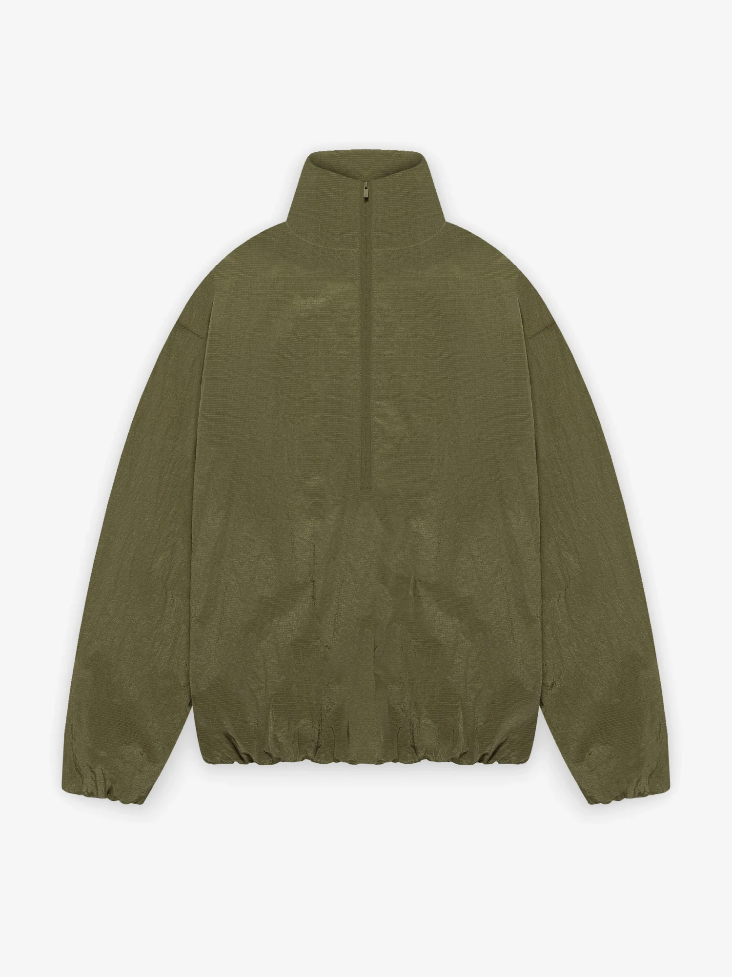 The Ripstop Halfzip Pullover is made of nylon ripstop, providing durable texture and water-repellent performance. The piece is fully lined with perforated poly and features a half-zip front to adjust the high neckline, as well as a back vent. Minimalist branding is included with the Essentials Fear of God black bar at the center front.