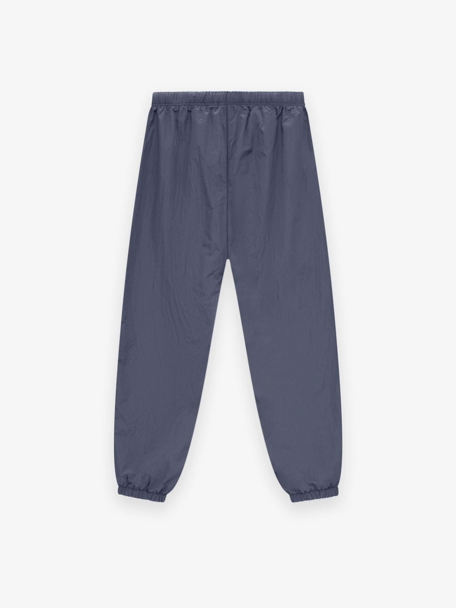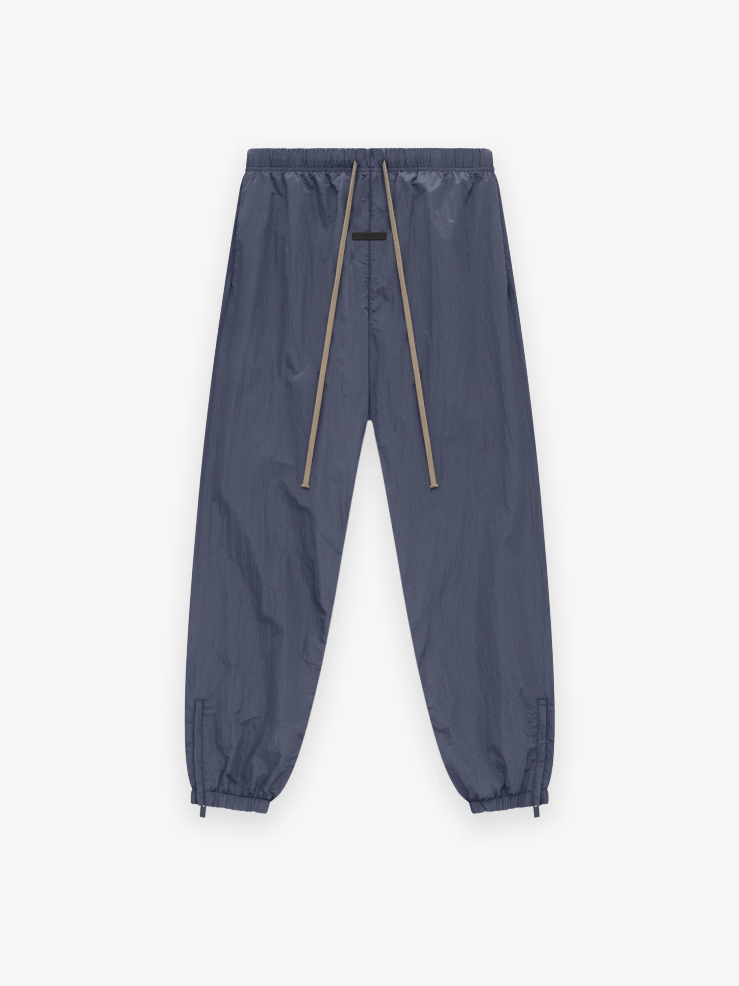 The Ripstop Trackpant is constructed with durable nylon ripstop for a textured, water-repellent finish. Details include a perforated poly lining, an encased elastic waistband, elongated drawstring, side pockets, and elastic ankle hems with adjustable zippers. Minimalist branding is showcased with the Essentials Fear of God black bar at the center front.