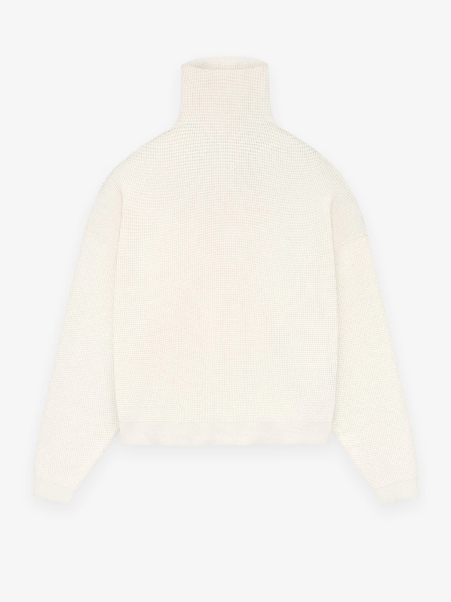 The Waffle Turtleneck is made from medium-weight waffle knit for multi-season comfort, and texture. Details include rib-knit cuffs, and waist-hem. The Essentials Fear of God rubberized label is at the back collar.