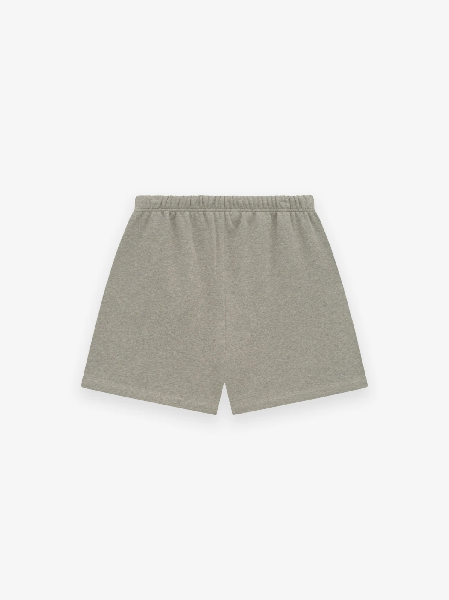 The Essentials WNBA sweatshorts are crafted from core fleece and feature a relaxed fit in both the seat and legs. They are adorned with a rubberized soft-touch WNBA Essentials logo, showcasing the WNBA emblem on the leg. Additional details include an encased elastic waistband with extended drawstrings and side seam pockets. A rubberized Fear of God label is positioned at the center front.