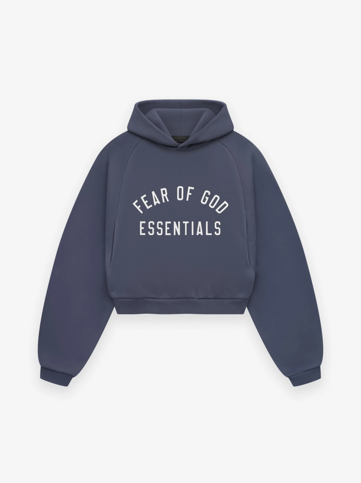 The Women’s Essentials Fleece Hoodie is made in heavy 480gsm core fleece to provide additional body and structure to its round, cropped silhouette. Collegiate-inspired “Fear of God Essentials” is screen printed on the front. Details include a double layer hoodie, rib-knit cuffs, and waist-hem. The Essentials Fear of God rubberized label is on the hood.