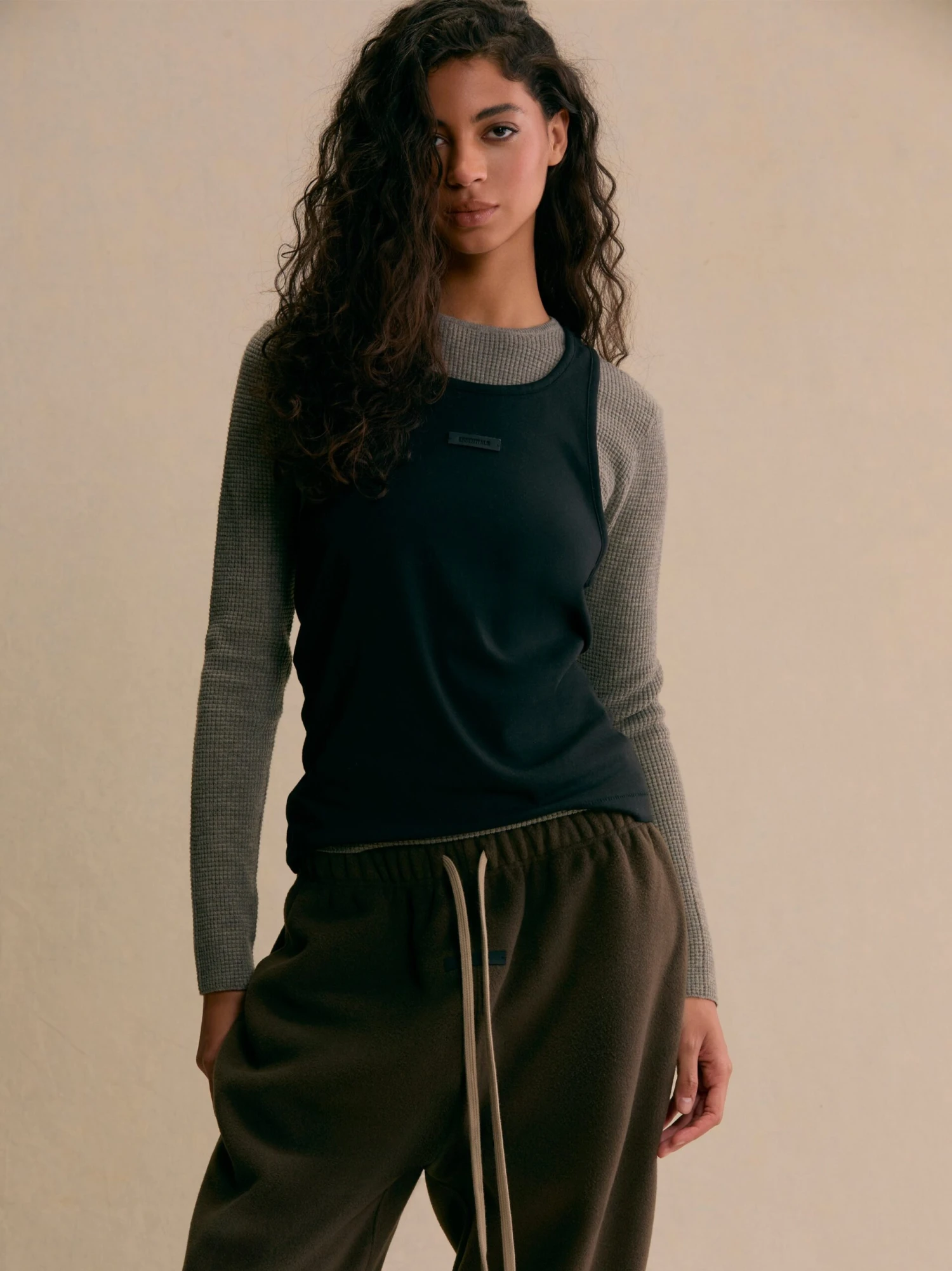 The Women’s Essentials Tank is made of a tri-blend jersey for a softer feel. The U-neck tank fits relaxed in the body with dropped armholes. New minimalist branding is featured with the rubberized Essentials leather black bar on the center front, and the Fear of God rubberized label is located at the back collar.