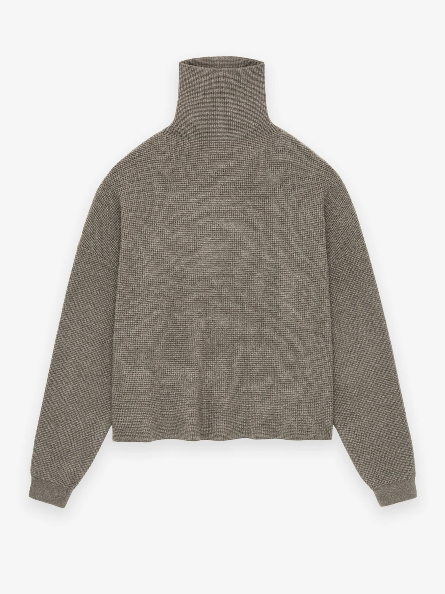 The Women’s Waffle Turtleneck is made from medium-weight poly-nylon knit for multi-season comfort, and texture. Details include rib-knit cuffs, and waist-hem. The Essentials Fear of God rubberized label is at the back collar.