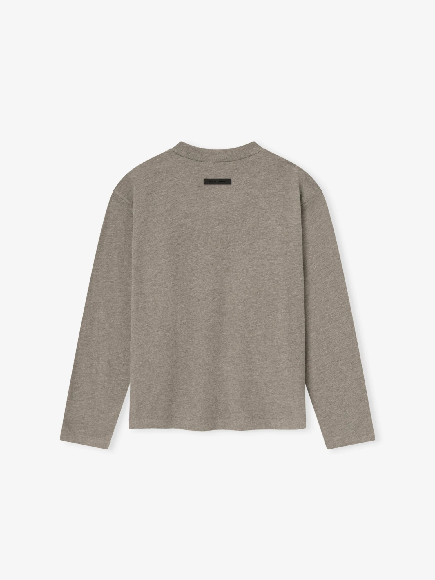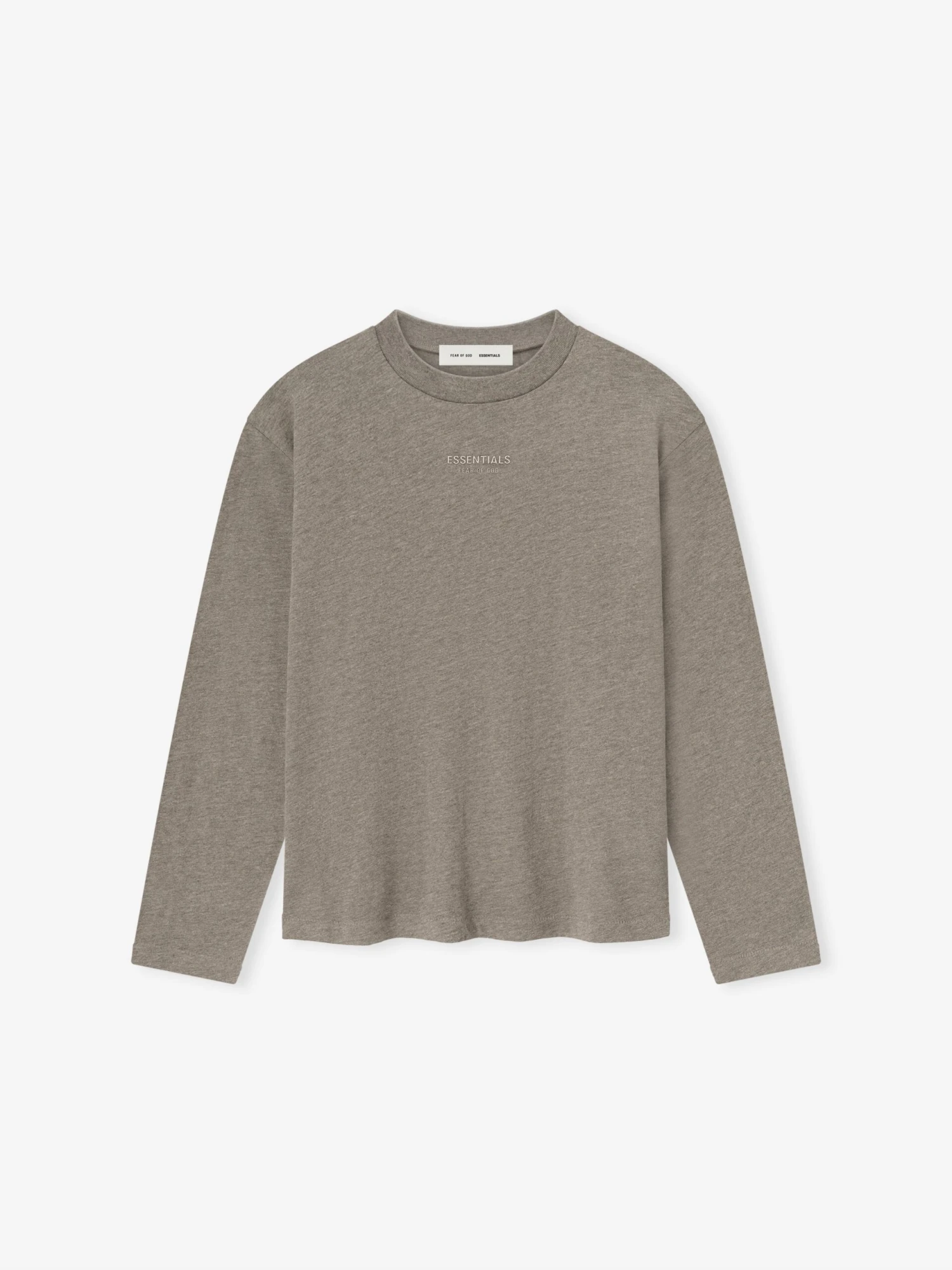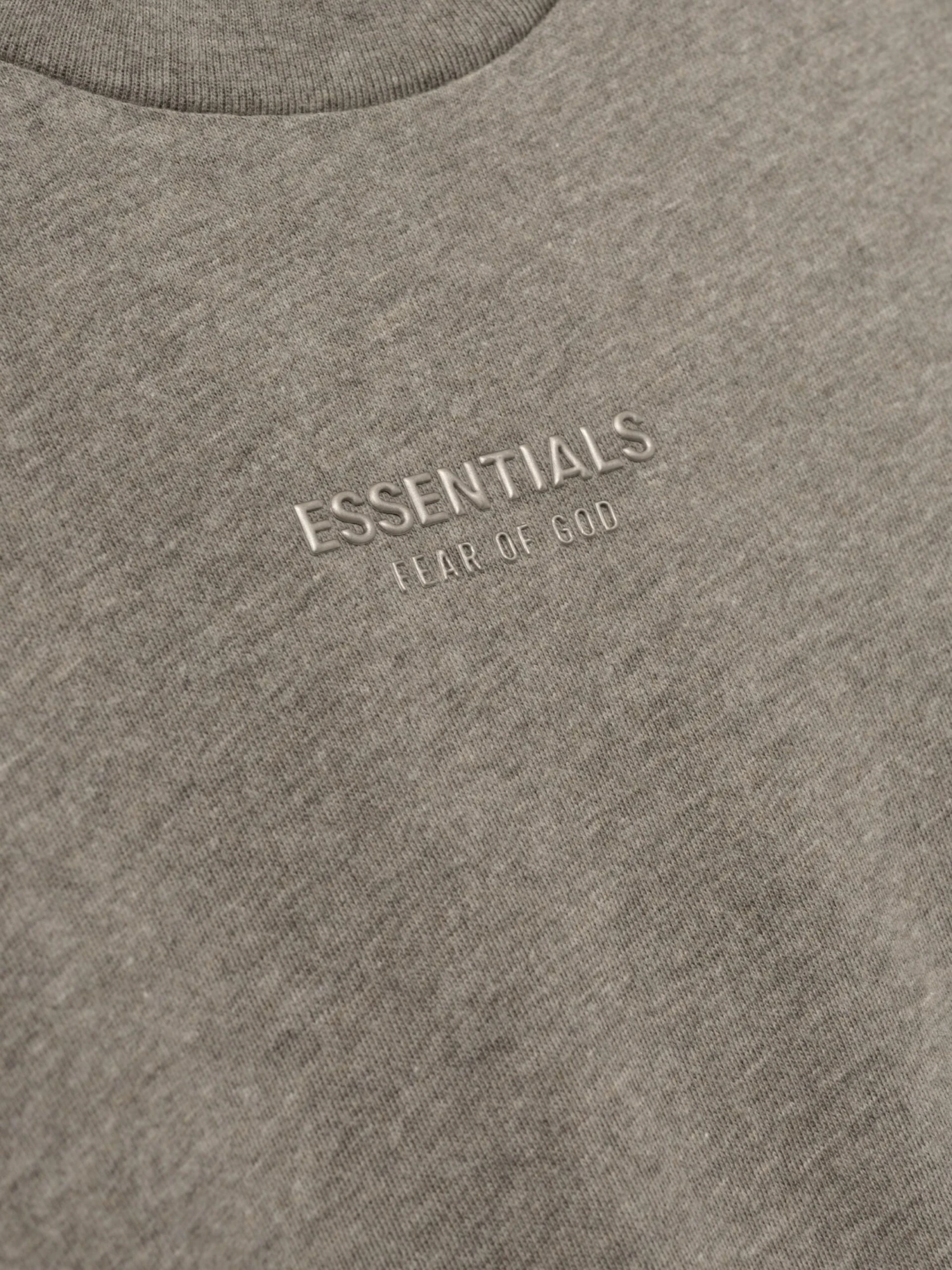 The Womens Classic Long Sleeve Tee is made of a tri-blend jersey for a softer feel. The rib-knit crewneck tee features a relaxed fit in the body and arms. Branding includes a “Essentials Fear of God” beveled metallic logo on the front and “Fear of God Essentials” rubberized label located at the back collar.