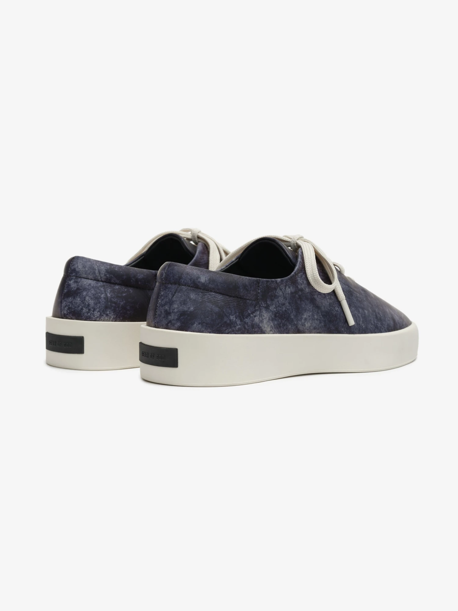 The 101 is the modern recreation of the timeless American deck sneaker. The lace-up style is crafted in Italy from a washed indigo Napa leather with a sculpted rubber 101 outsole and Fear of God black bar label at heel.