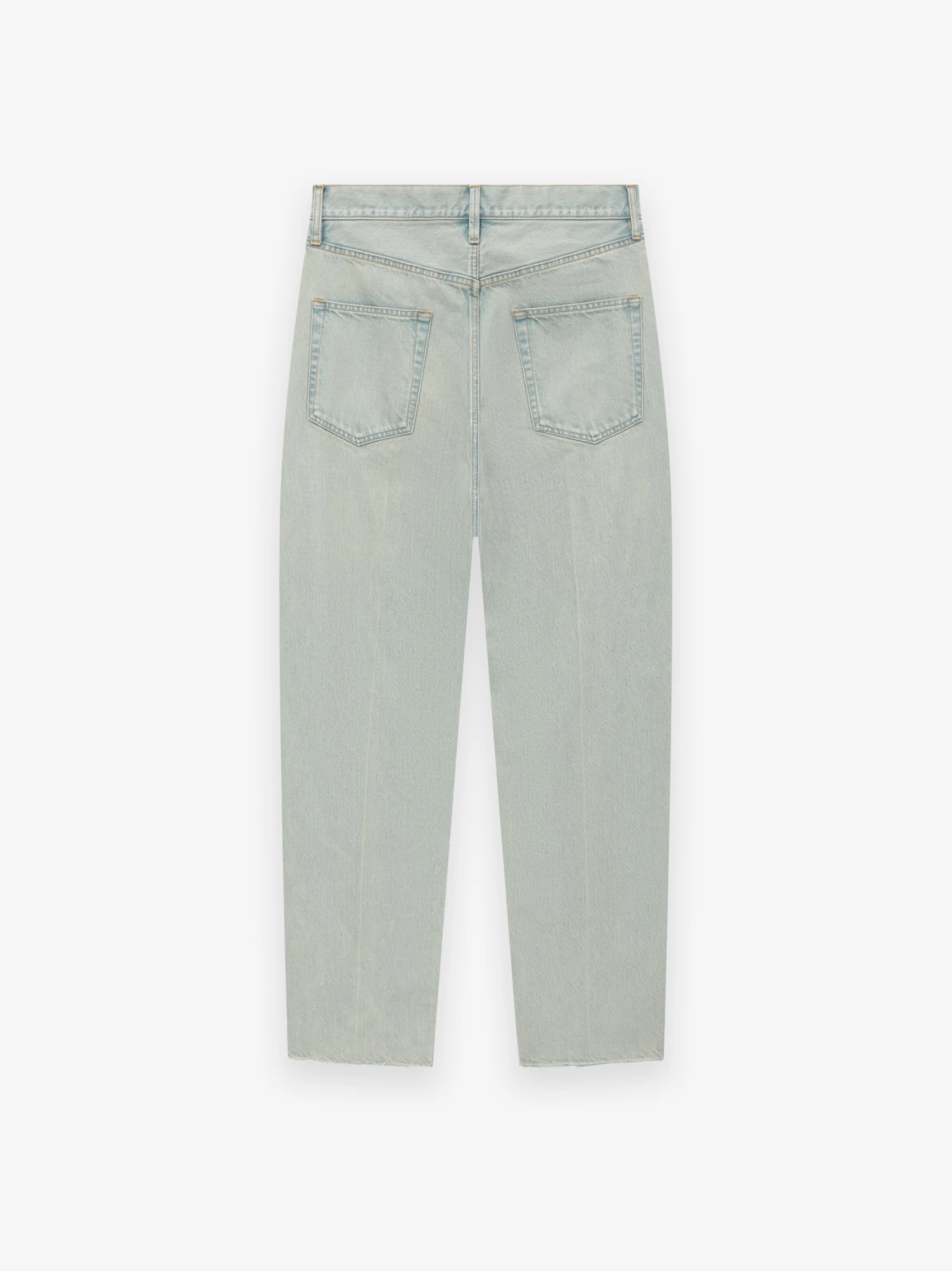 The Relaxed 5 Pocket Jean is made in Japan from vintage indigo denim for a timeworn appearance. The relaxed leg has a slight taper, and is detailed with a antique brass hardware, raw ankle hem, and a Fear of God label is stitched on center front.