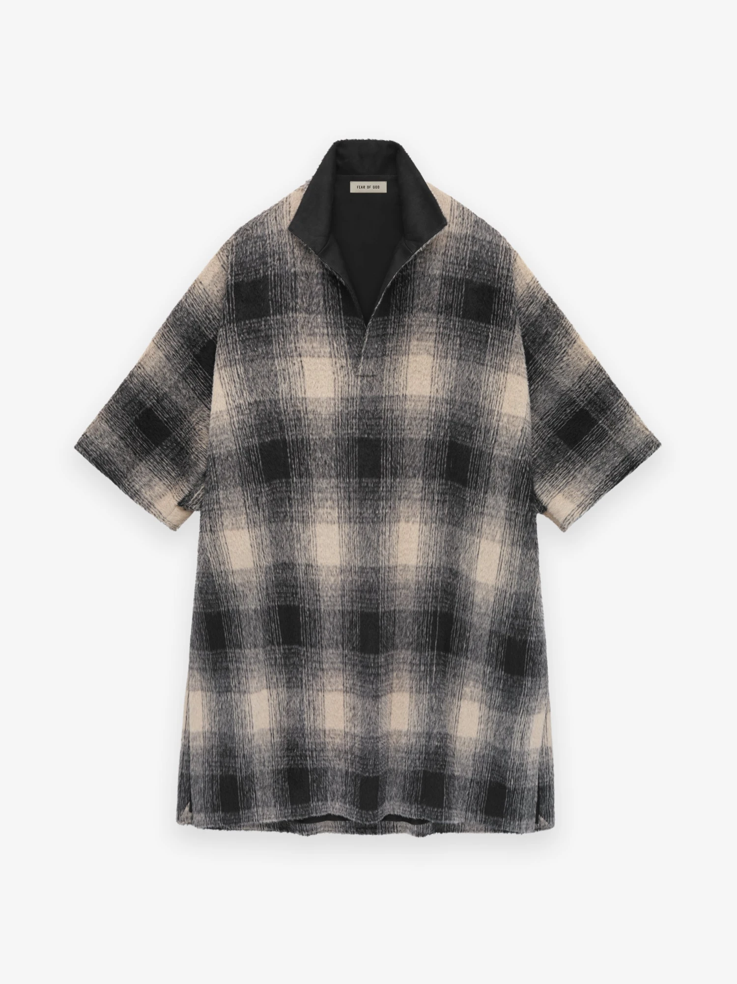 The Polo Collar Poncho is made in Italy from alpaca wool blend to provide a luxurious texture and modern plaid pattern to traditional piece. The piece features a leather polo collar with dropped shoulders and poncho sleeve openings. A Fear of God label is stitched at the back collar.
