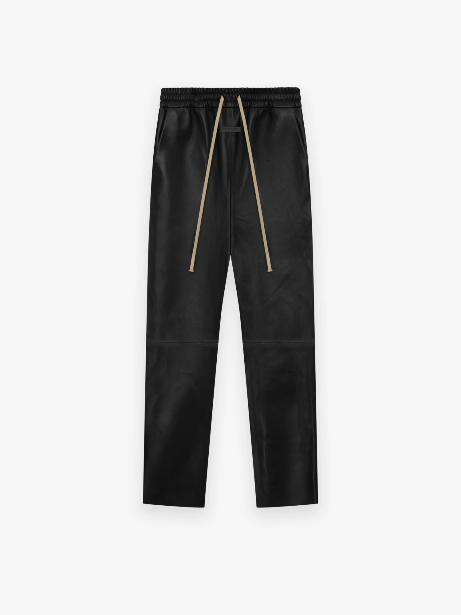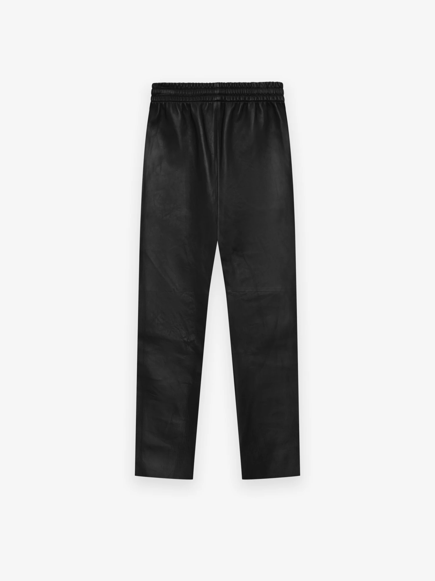 The Forum Pant is crafted from Italian bonded leather for bold structure. The piece features signature Fear of God elements, such as the relaxed leg, dropped inseam, and elasticated waistband with elongated drawstrings. A Fear of God leather label is stitched on the center front.