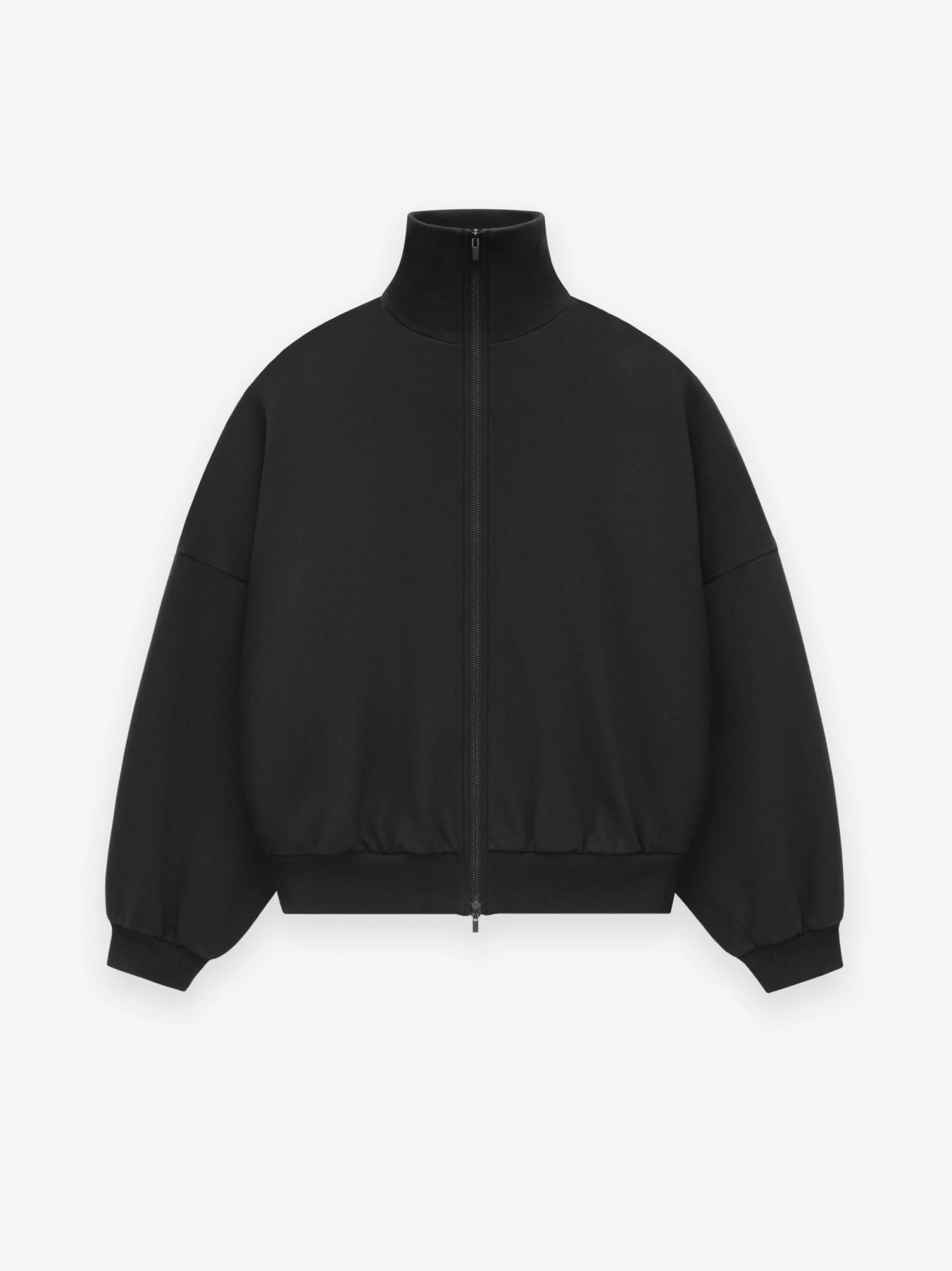 The High Neck Jacket is sewn in Italy from cotton-wool to elevate the sportswear style. The relaxed fit in the body, dropped shoulders create comfort. A high neckline, full front zip, side pockets, wool rib-knit cuffs, and waist-hem frame the piece. A Fear of God label is stitched at the back collar.