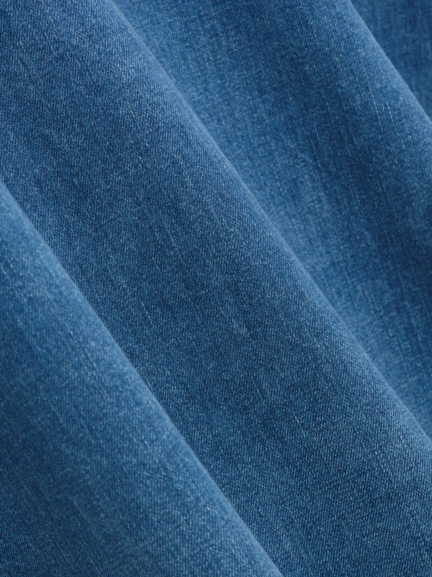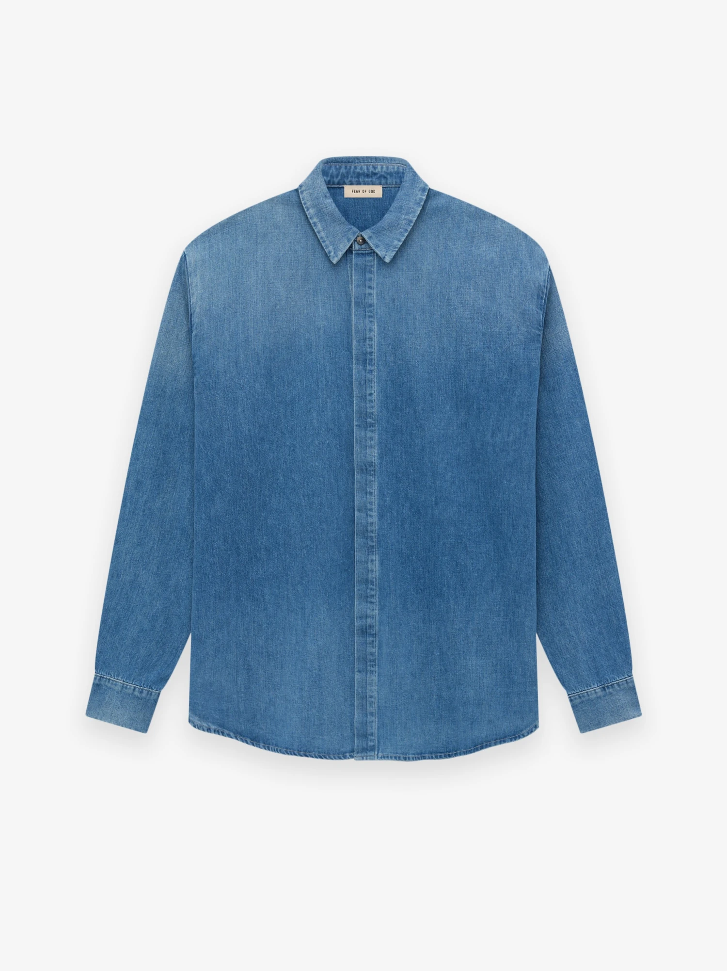 The Button Up Shirt is stitched in Italy from a medium indigo denim with a minimalist covered placket with horn summarys. A Fear of God label is stitched at the back collar.