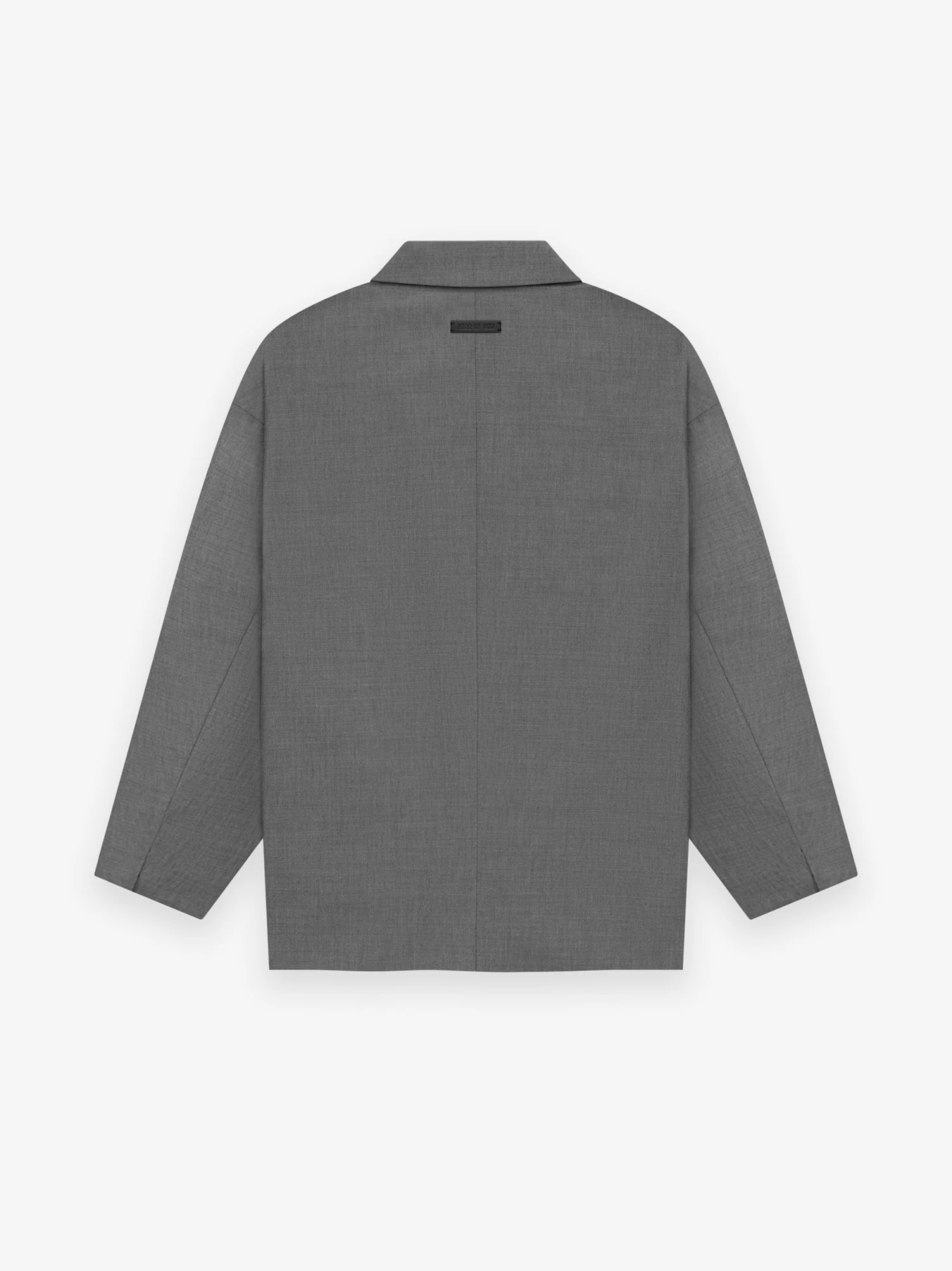 The California Blazer is tailored in Italy from a virgin wool-cotton blend with elastane for lightweight stretch comfort. The casual California style is cropped, boxy silhouette with soft shoulders, and no closure. The piece is unlined and unstructured with side pockets, and a Fear of God label stitched at the back collar.