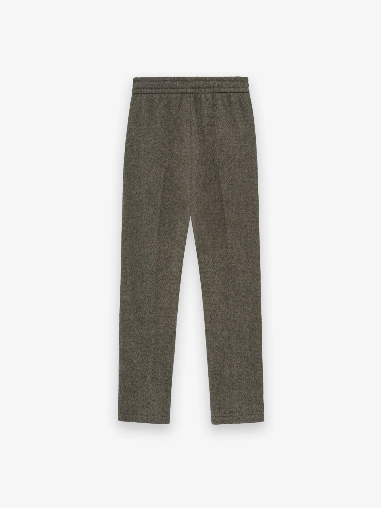 The Drawstring Straight Leg Pant is crafted in Italy from a heavily textured 100% virgin wool for a compelling appearance. The relaxed straight-leg fit has a single pleat and is designed for timeless casual comfort. Additional details include an encased elastic waistband, self-fabric drawstring, and side pockets. A Fear of God label is stitched on the center front.