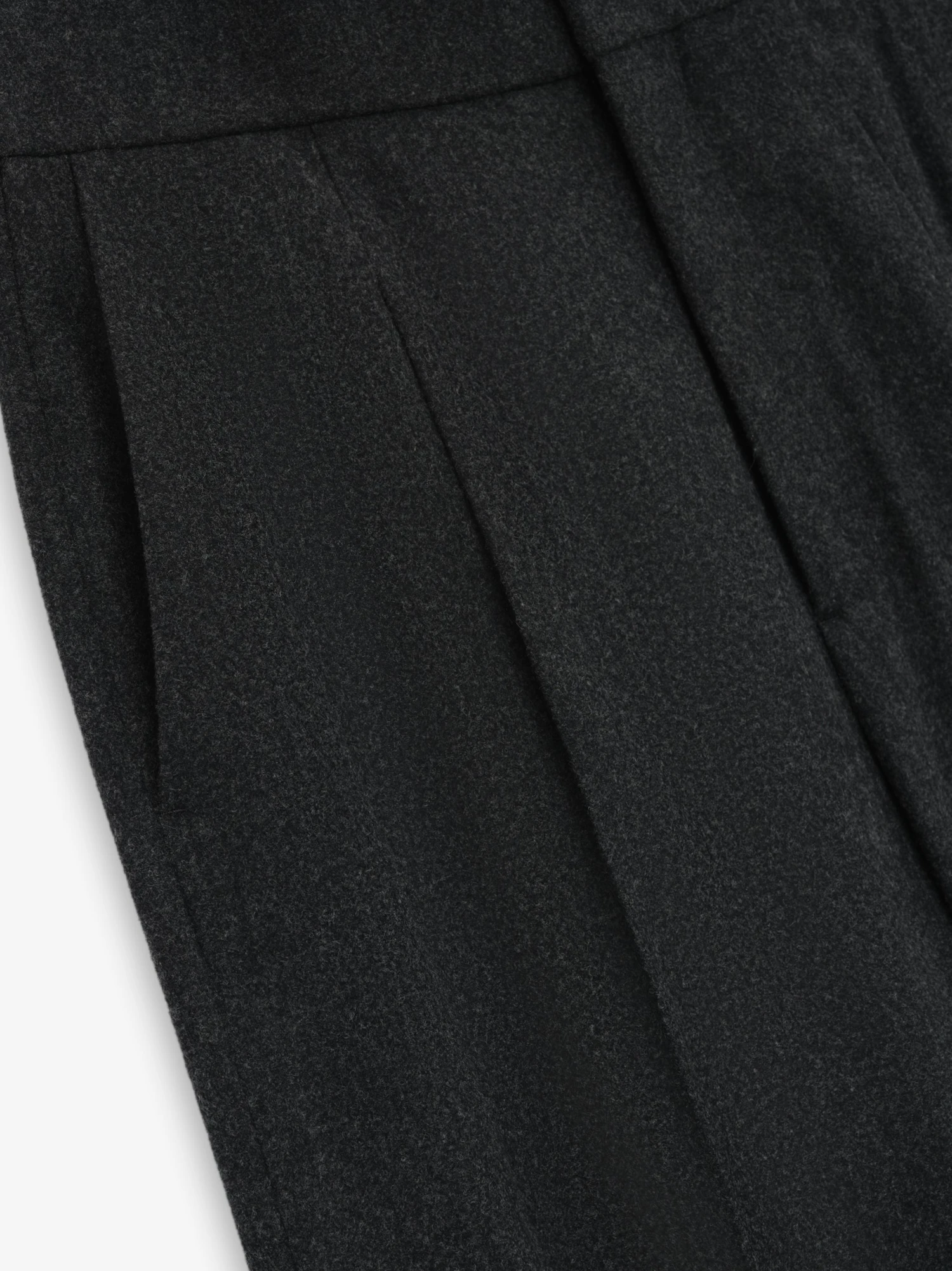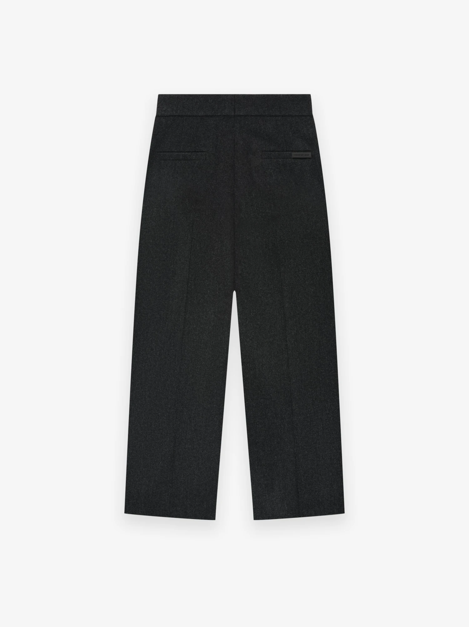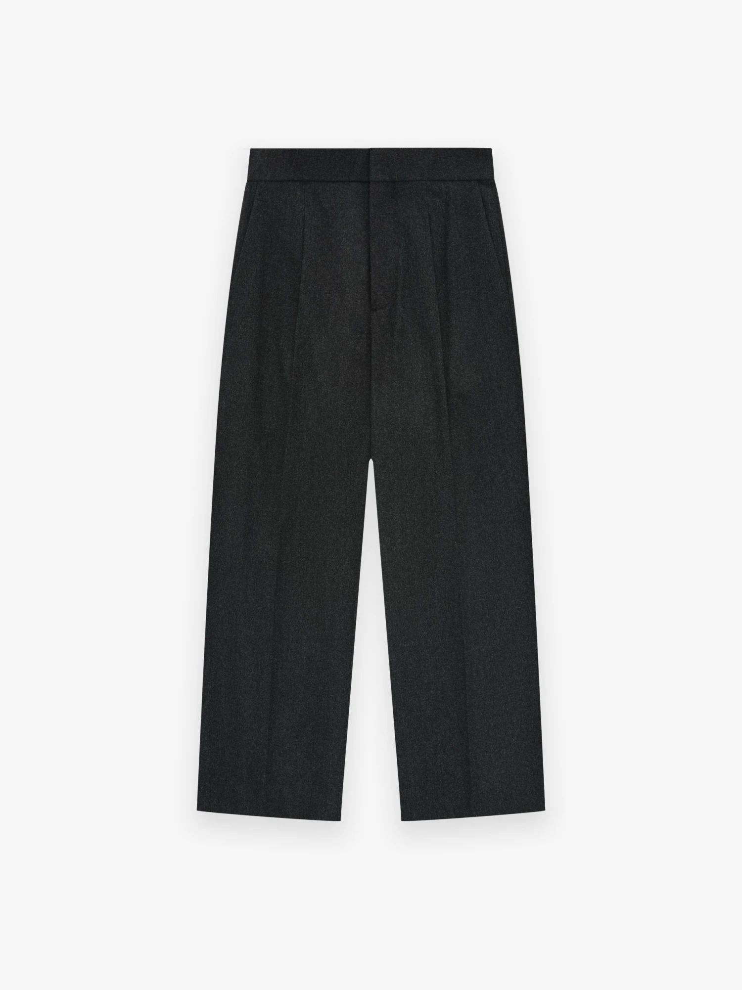 The Single Pleat Wide Leg Trouser is tailored in Italy from a soft wool flannel to provide comfortable drape in the voluminous silhouette. The pant is designed to style singularly or pair with the matching Long Relaxed Lapelless Blazer. The high-waisted trouser style is detailed with side pockets, and leather Fear of God label.