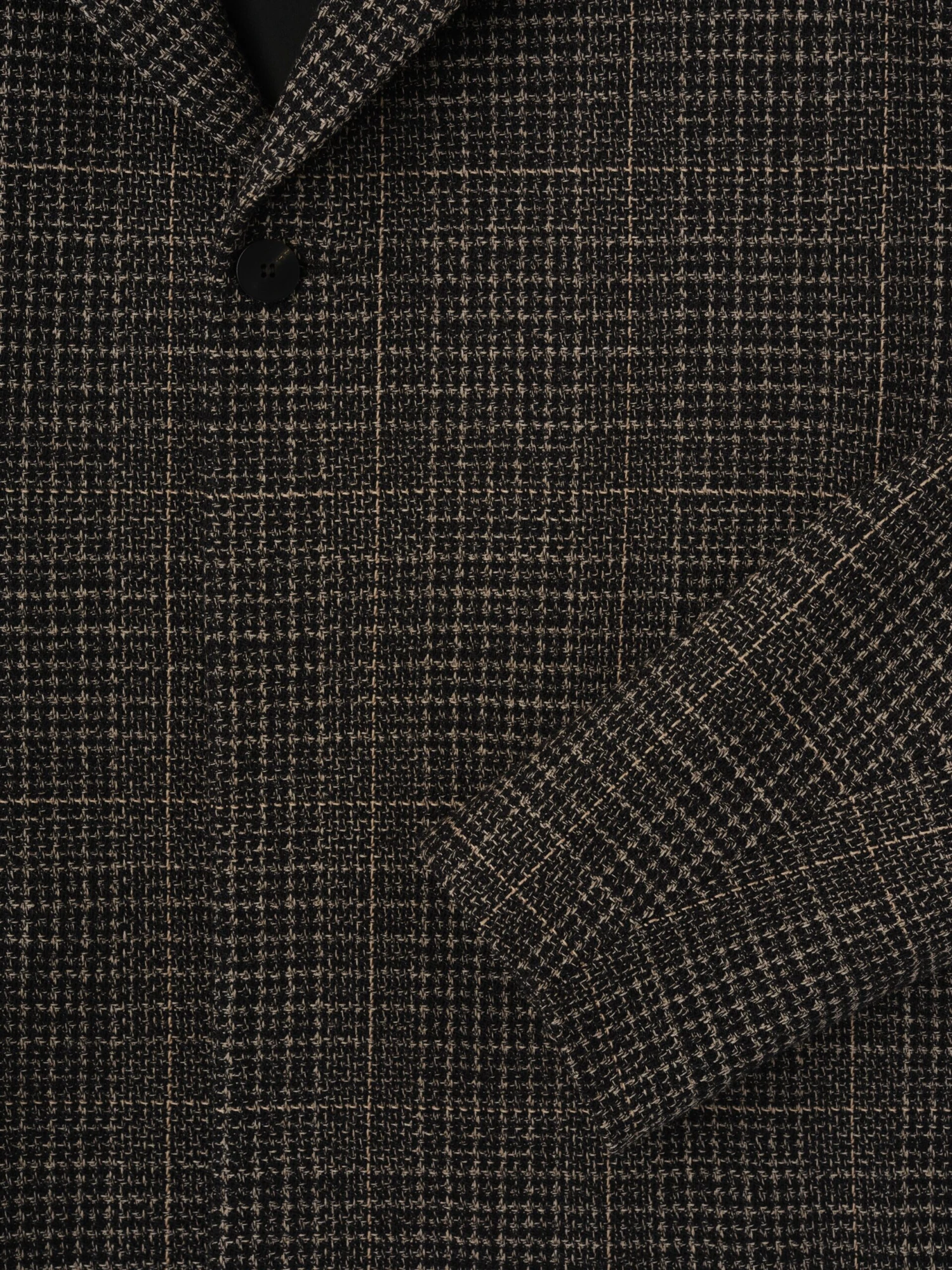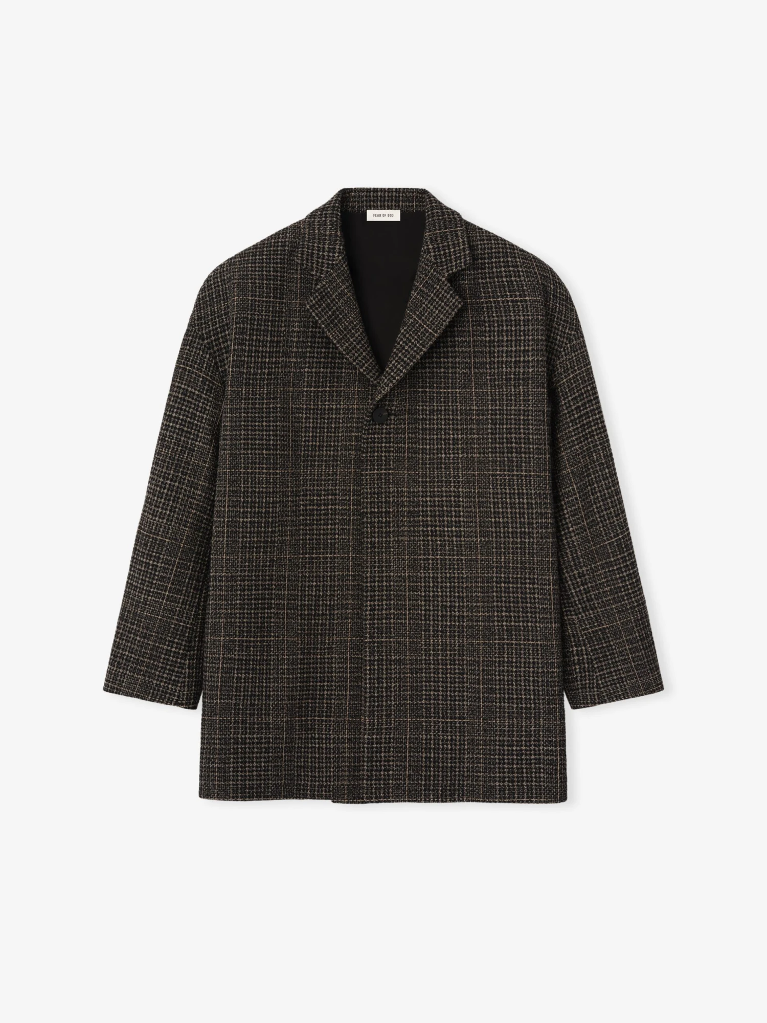 The Relaxed Blazer is crafted in Italy from a structured wool with a plaid pattern, giving it sartorial style. Its casual design features modern, relaxed proportions for a comfortable fit. Additional details include a peak lapel, horn summary front closure, side pockets, and Fear of God label stitched at the back collar.
