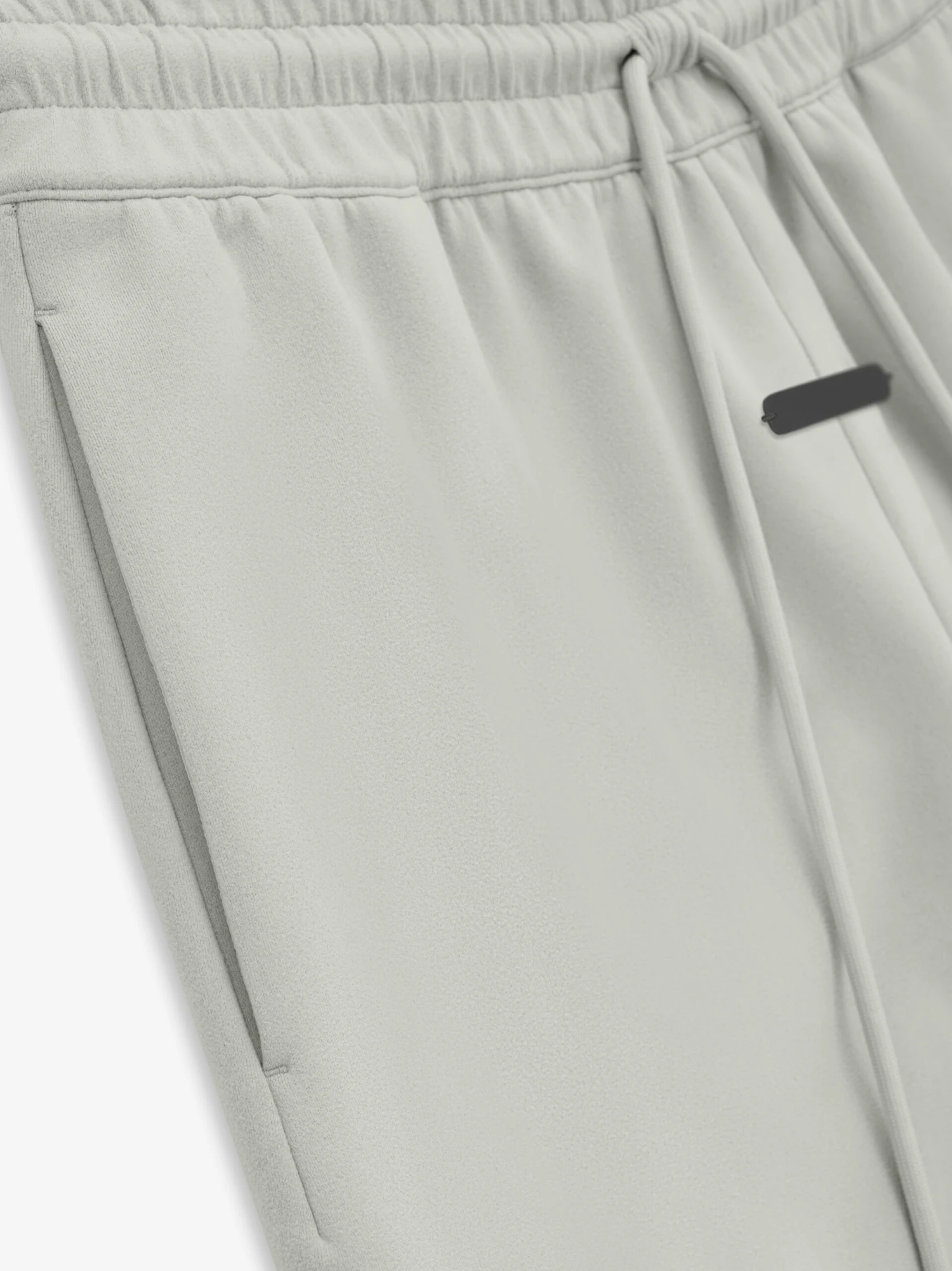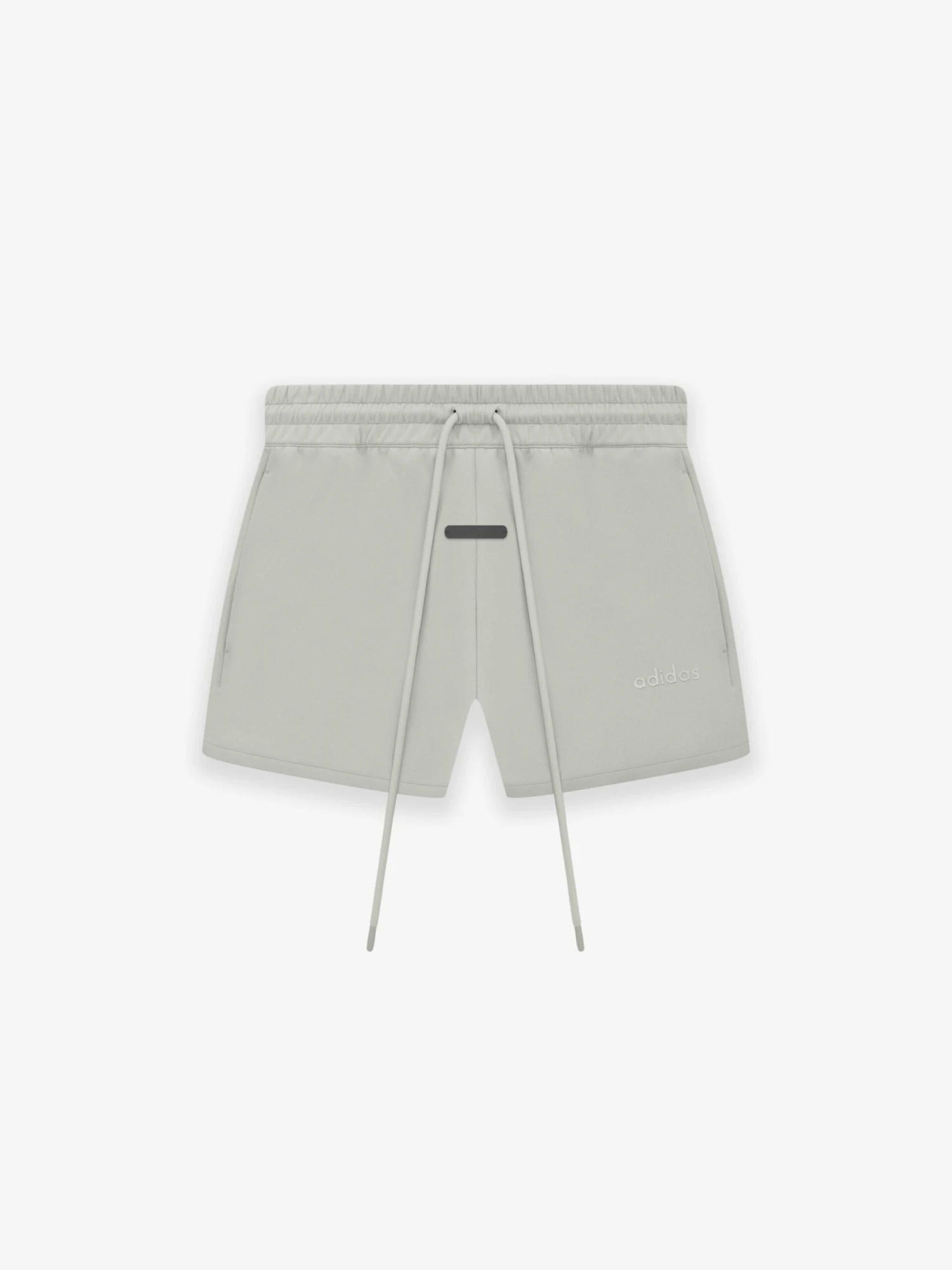 The Fear of God Athletics Suede Fleece Short is elevated in a heavy double-knit, providing structure and comfort with a rich, brushed texture. The cropped short is designed with a relaxed fit in the seat and leg. Functional details include an elastic waistband with drawcord and side seam pockets with perforated 4-way stretch lining. Branding is defined by an adidas logo on the leg and sueded black bar label on the center front defines minimalist branding.