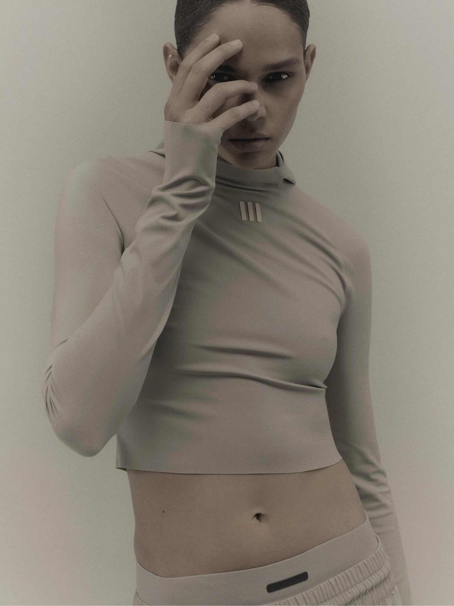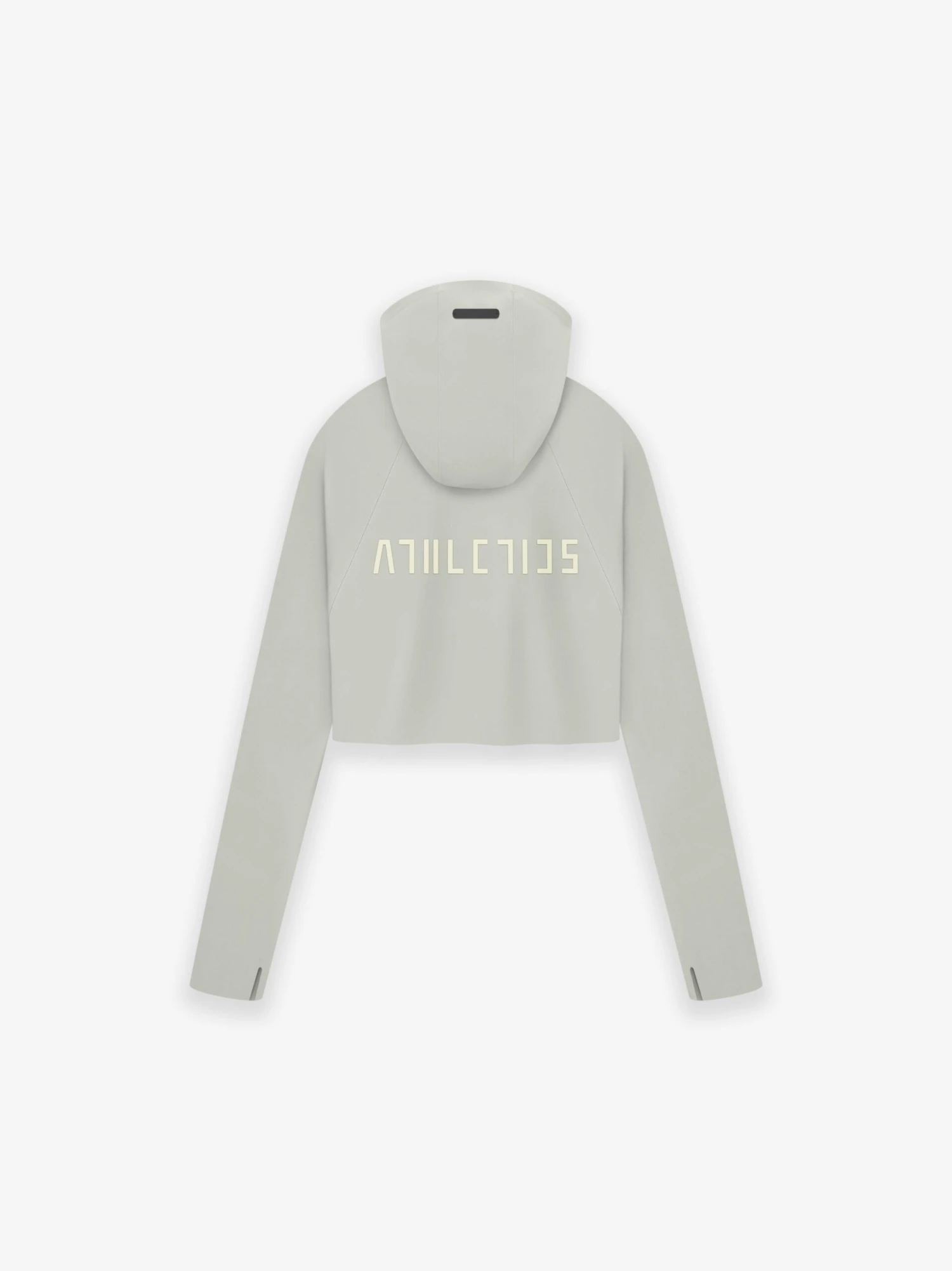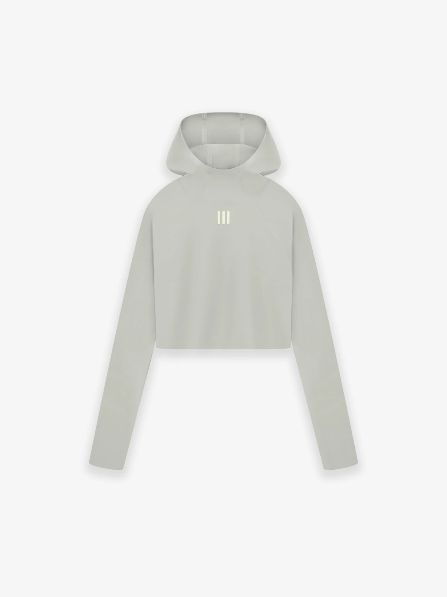 The Fear of God Athletics Base Layer Crop Hoodie is elevated in a high-performance stretch fabric to balance the compression with the freedom of movement. The women’s base layer displays contemporary style with a mockneck hoodie with raglan sleeves. Functional details include bonded seams and laser-cut edges. Branding is realized in a sueded adidas 3-Stripe logo on the center front with a black bar label on the hood.